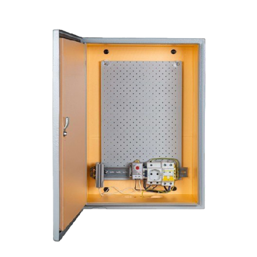 Особенности устройства | Автоматический выключатель;Гермовводы 2 шт;Замок;Монтажная плата;Нагреватель 75 Вт;Подходит для низких температур;Розетка;Термореле;Утеплитель |