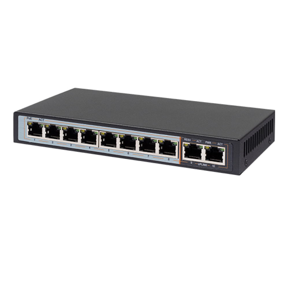 - 8 портов 10/100Base-TX (PoE+), 2 порта 10/100Base-TX