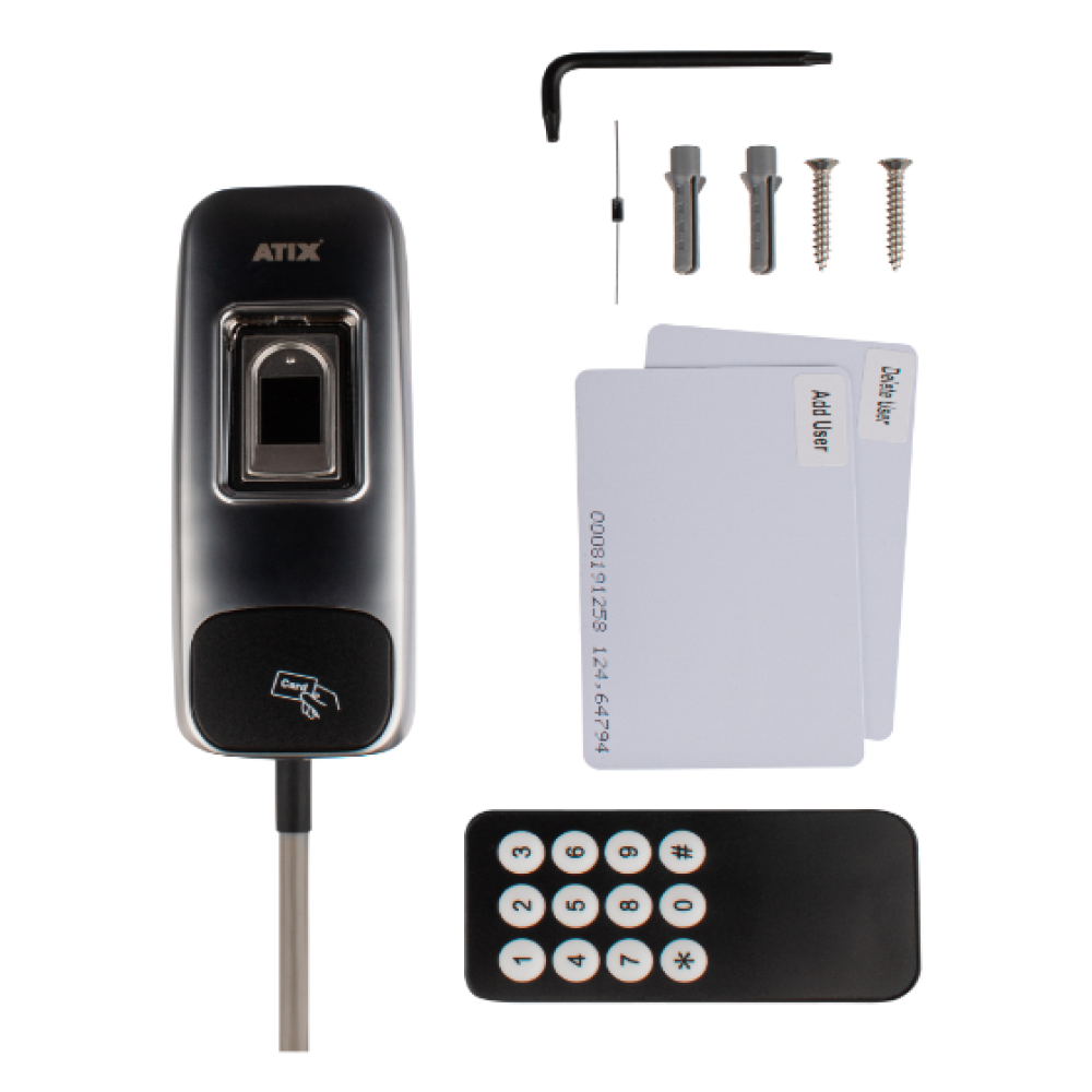 - Память устройства на 10000 ключей пользователей и 300 отпечатков пальцев;