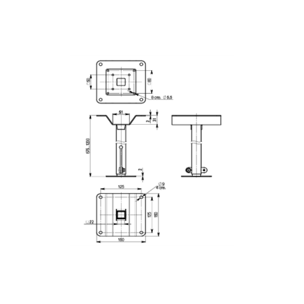 Размер площадки для крепления 150х150, длина кронштейна 600мм-1200мм.