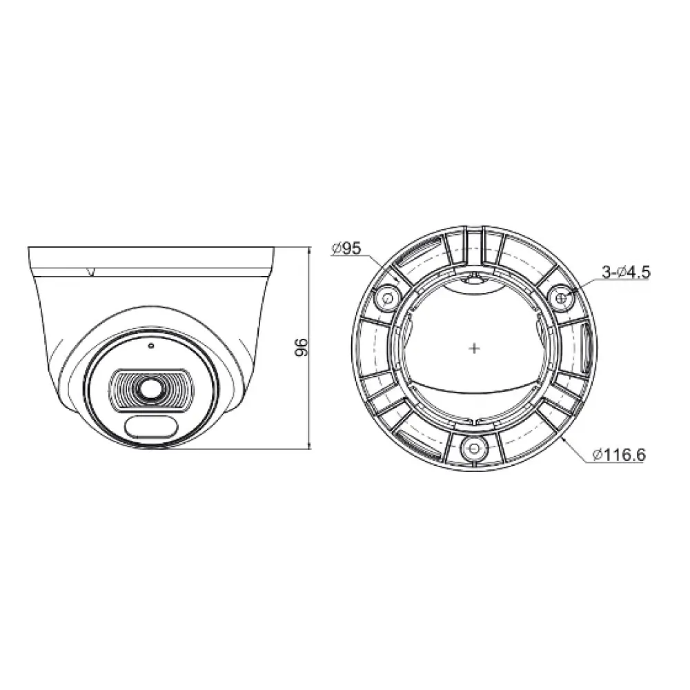 Камера оснащена 4-мегапиксельной матрицей 1/3" CMOS и объективом 2.8 мм с углом обзора 92.8°, обеспечивая детализированное изображение с разрешением 2560×1440 (20fps). Чувствительность 0.02 Lux позволяет передавать четкое полноцветное видео даже при слабом освещении.